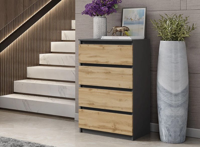 Eine der großen Stärken der 60 cm breiten Kommode ist ihre Vielseitigkeit in Bezug auf die Platzierung. Sie kann in nahezu jedem Raum eingesetzt werden – im Schlafzimmer als Kleiderkommode, im Wohnzimmer als Beistellmöbel oder sogar im Flur als praktischer Aufbewahrungsort für Schlüssel und andere kleine Gegenstände. Ihre kompakte Größe macht sie ideal für Wohnungen oder Häuser, in denen Platz ein wertvolles Gut ist.